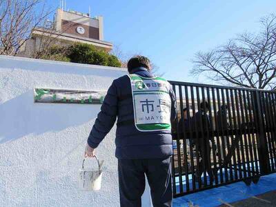 市役所では、市内の学校の正門付近をきれいにする活動を行っているそうです。