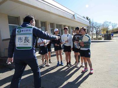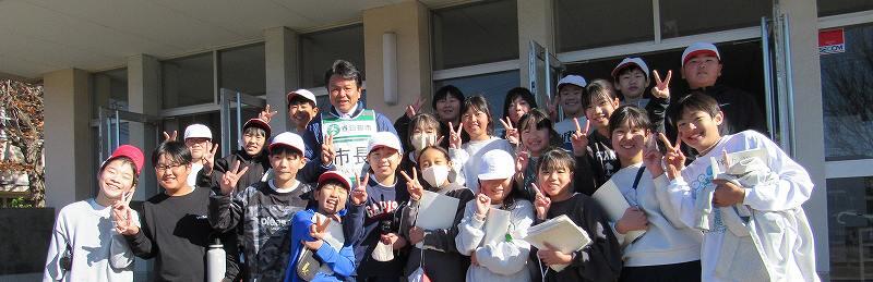 体育の授業を終えたばかりの6年生たちが、岩谷市長さんを呼び止めました。