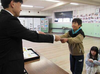 今回は、はじめに、「市内科学展」に出品した児童の表彰です。