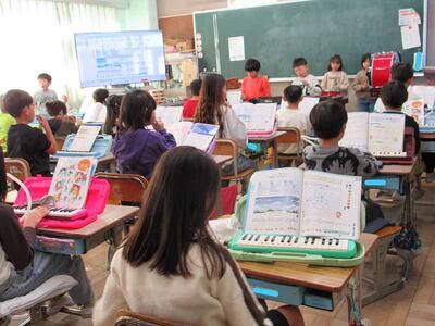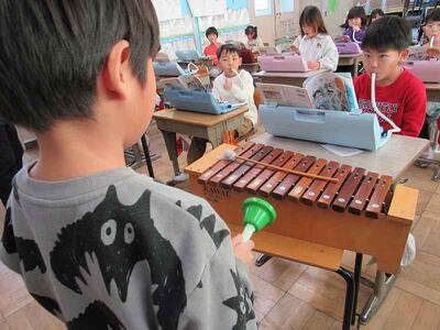 2年生の教室から、合奏が聞こえてきます。