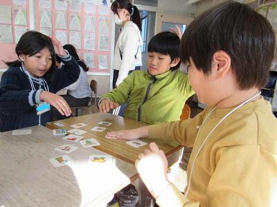 とても楽しく「イングリッシュかるた大会」に取り組んでいますね。