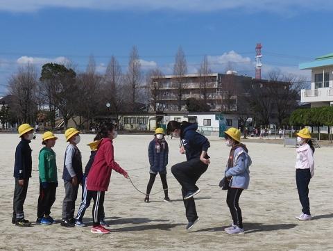 子どもたちは寒さにも負けず、クラスで長縄をがんばりました。