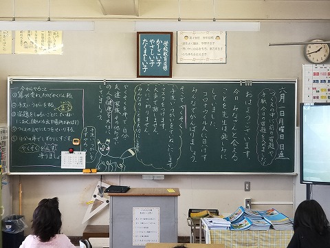 また、冬休みあけにもかかわらず、朝の活動では、クラスで冬休みの思い出の発表をしたり、一生けん命漢字練習に取り組んだり、元気に今月の歌を合唱したり、真剣な、そして活気ある姿が見られました。