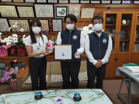 春日部ライオンズクラブより、コロナ対策のための消毒液をいただきました。
