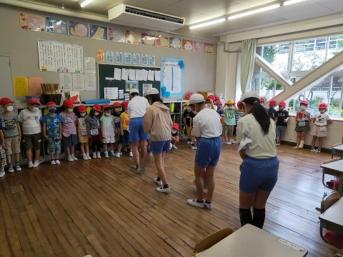 曲に合わせて手足や列がそろうと、みんなの心もそろいます。