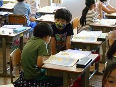 縦割り班で、お兄さんお姉さんが下の学年の子に親切に教えてあげていました。