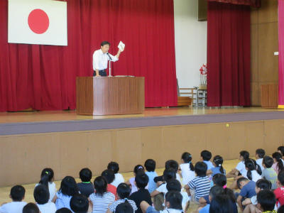 月曜日の朝、体育館で全校朝会が行われました。