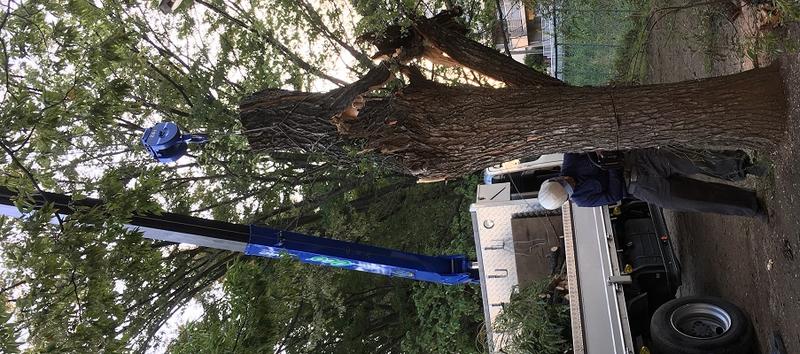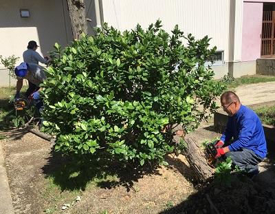 施設課の方がすぐに動いてくれ、修繕チームの方や樹木の専門業者さんを派遣してくれました。大木2本は、大がかりな作業となり、重機が2台で対応していました。高圧線にかかっていたので慎重に作業を進め、2本を切り終わったのは暗くなってからでした。遅くまでありがとうございました。