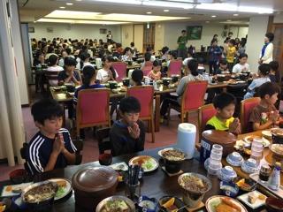 夕食の時間になりました。みんなお腹がすいています。夜のキャンプファイヤーに向けて、しっかり食べましょう。