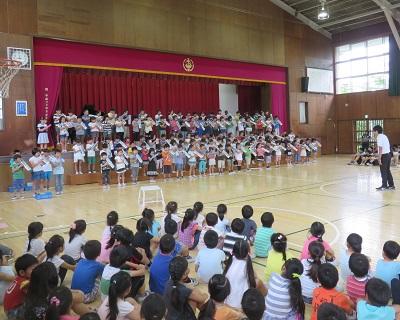 1時間目は、体育館で終業式を行いました。校長先生からは、明日から始まる夏休みは、毎日、やるべきことを決めて、それを守り続けること、自分の命は自分で守って安全に過ごして欲しいことなどの話がありました。