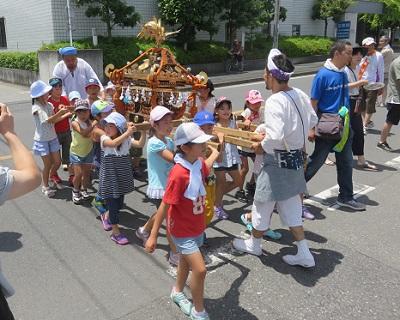八木崎っ子も、暑い中でしたが、保護者や地域の人が見守る中、御輿をかついだり山車をひっぱたりして祭りを楽しんでいました。