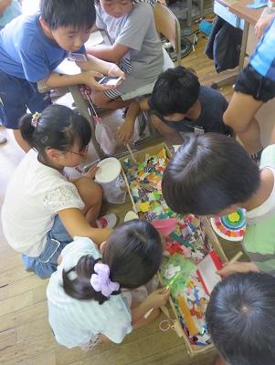 4年生のクラスでは、お楽しみ会をやっていました。宝探しや金魚すくい等々、手作りゲームを楽しんでいました。