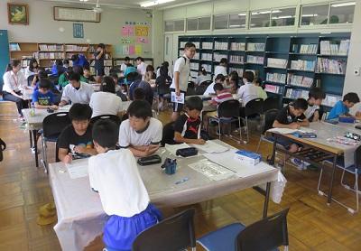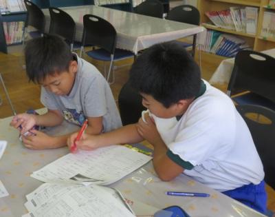 午後も5年生がサマースクールに取り組んでいます。学習ボランティアのお兄さんお姉さんたちも12名入ってくれました。黙々と課題に取り組んでいます。