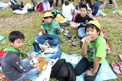 1年生が生活科の授業で、学校のおとなりにある中央町第六公園へ行ってきました。春に1度行っているので、今日は、春との違いをみつけること、夏探しをめあてに遊んできました。葉の色や見かけた虫、実など、色々見つけたようです。蝉の幼虫を見つけた子たちは、ずーっと座って見守っていました。