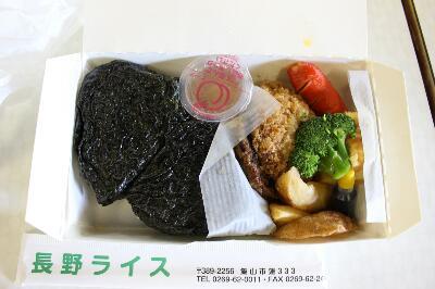 本日の献立は、黒パン、なす入りハンバーグ、フレンチサラダ、わかめスープ、シューアイスでした。