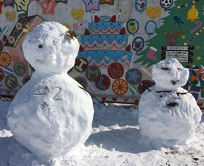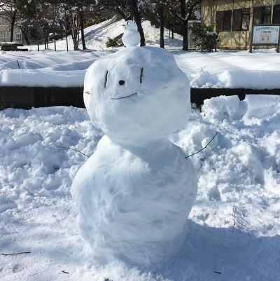 学校のお隣にある中央町第六公園に180cmほどの大きな雪だるまの家族がつくられていました。朝早くに家族で作ったのかなと思わせる素敵な雪だるまです。どなたが作ったのかな?