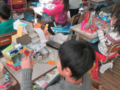 八木崎小学校伝統の卒業制作、羽子板の絵付けが始まりました。