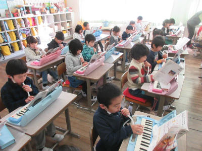 鍵盤ハーモニカで「子犬のマーチ」を演奏しています。