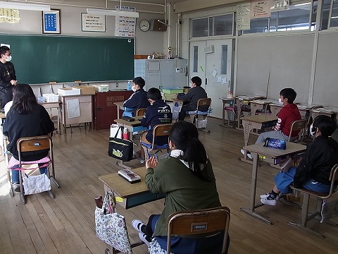 本校は、学区を3つに分け、1/3ずつ通学班登校しています。よって、下の写真のような教室になります。