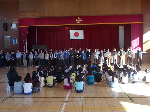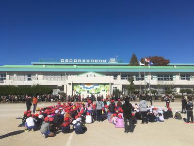 緊急地震速報を放送で流すと同時に、子どもたちはすぐに机のしたにもぐったり、校庭の中央に集まって頭を保護したりするなど、多くの子が緊張感をもって臨むことができました。