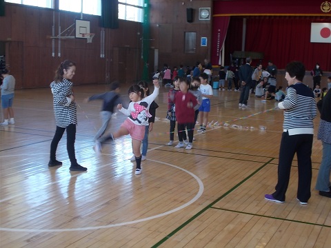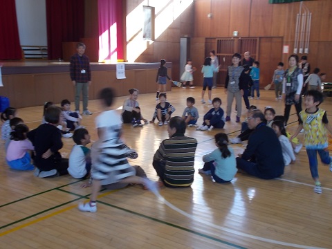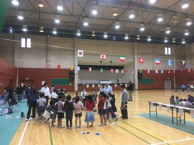 本日、大沼体育館で開催されています。みんなで楽しく英語に触れ合う催しです。