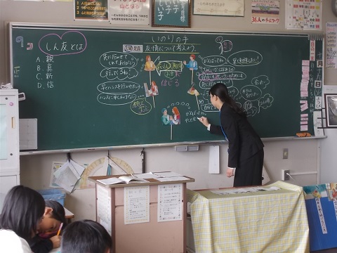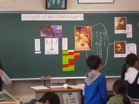 4年生は「友情」を、5年生は「広い心」をテーマに、人間だからいろいろな感情があり、一筋縄ではいかないけれど、できる限り理想に近づけるようにどの子も熱心に授業に参加していました。
