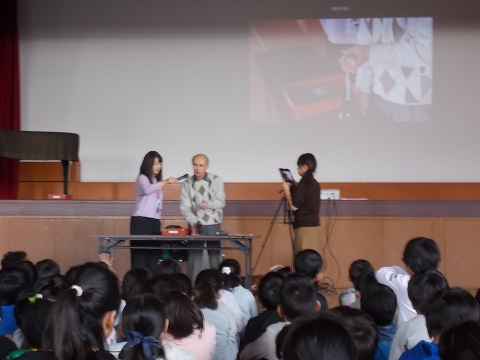 今日は、埼玉県立歴史と民族の博物館の講師の方々による出前授業が行われました。