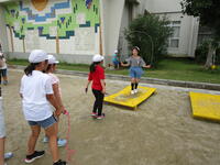 鬼ごっこ、縄跳び、タイヤ跳び、虫探し・・・・・密にならないように、子供たちなりに工夫して遊んでいました。