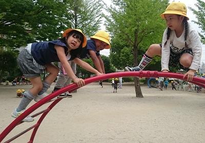 学校の周りの様子を見学しながら、先生から危険箇所についてお話をしてもらいました。また、第6公園では、学校にない遊具があり、子どもたちに大人気。短い時間でしたが、楽しく遊ぶことができました。