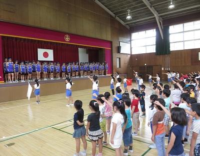 代表委員の子どもたちが応援団を結成し、リーダーとなって選手団にエールをおくってくれました。選手からも力強い決意表明があり、大会当日の活躍が楽しみです。