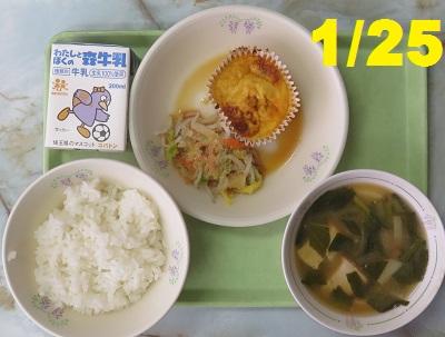 本日の献立は、ご飯、和風卵焼き、白菜のアーモンド和え、みそ汁、牛乳でした。