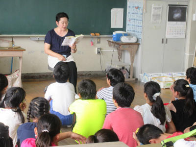 4年生の教室では、代表児童による読み聞かせが行われていました。