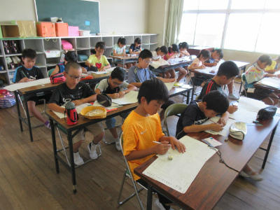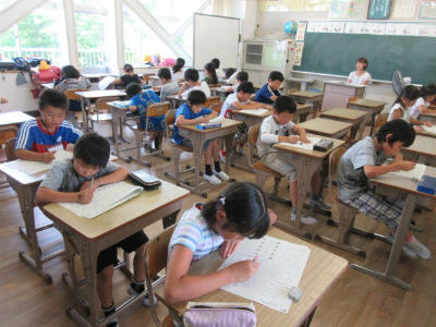 本番さながらの緊張感の中、参加児童はひたすら鉛筆を走らせていました。