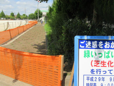 校地整備が終わり、いよいよ芝生が植え付けられました。