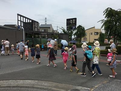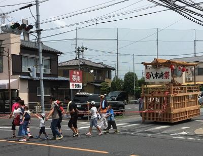 春日部 夏まつり2日目。10時30分から、浜川戸地区や八木崎地区のこども御輿・山車が動き始めました。今日も、地域の皆様に見守られながら、汗をふきふき町内を練り歩いていた八木崎っ子たち。同時刻に、子ども御輿・山車のパレードもスタート。春日部郵便局近くの駐車場からイトーヨーカドー付近を周り、ロータリー付近へ。昨日より多くの子どもたちが頑張っていました。