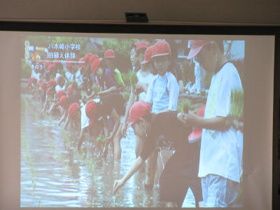 本校の図書室にお集まりいただき、校長から八木崎小学校の特色ある教育活動についてご紹介しました。今年度の行事予定の確認や情報交換の後、テレビ埼玉やJ:COMの取材を受けた授業の映像も視聴していただきました。