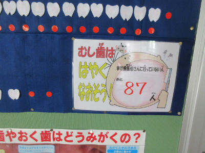 白い歯は、むし歯のない歯と治療が済んだ歯を示しています。各学年とも「白い歯」のマークが増えてきたようです。