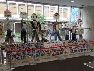イトーヨーカドー春日部店の入口付近に、4年生が作った「かかし」が展示されています。8月5日まで展示し、その後、田んぼのかかしたちと合流します。