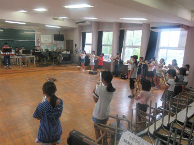 今日は第1回目ということで基本的なことを確認し、音楽室で「こんにちはトランペット」「RPG」などの曲を演奏しました。