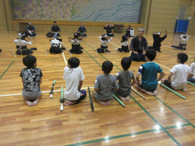 午後2時からは、「THE 侍」(剣道体験教室)が開かれました。礼儀作法から竹刀の振り方指導、ミニゲームを通して剣道の基本を学びました。