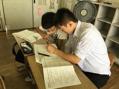 今日も8:30~サマースクールを実施しました。ボランティアの学生さんたちも大勢かけつけてくれました。参加している児童も慣れてきたようで、考えても分からない時は、ボランティアの学生さんにヒントを求めるなど、積極的に学習に取り組んでいました。
