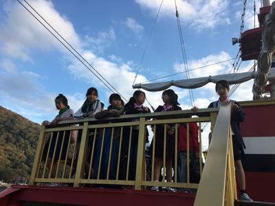 芦ノ湖の上を海賊船が動き始めました。風が心地よいです。