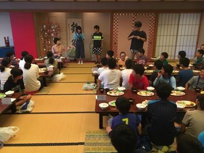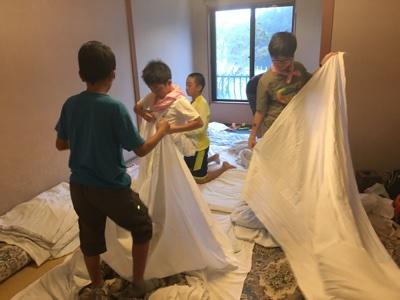 買い物もお風呂も終わった部屋では、今日一日の振り返りをやっています。この部屋の子どもたちは、すべて終わり、あとは寝るだけとのこと。部屋の中で静かに楽しんでくださいね。