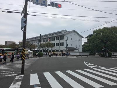 小田原城に着きました。しかし、駐車場がいっぱいで、近くにある三ノ丸小学校横で降りました。