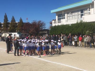 少し肌寒いですが、見事な秋空の快晴のもと、今年の持久走大会が始まります。456年生の開会式です。9時出走予定です。
