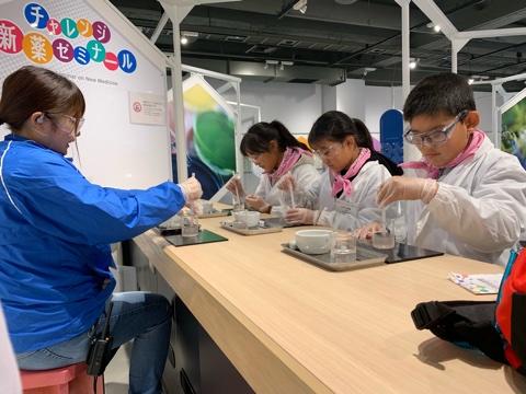 チャレンジ新薬ゼミに参加しています。白衣を着て科学者気分?