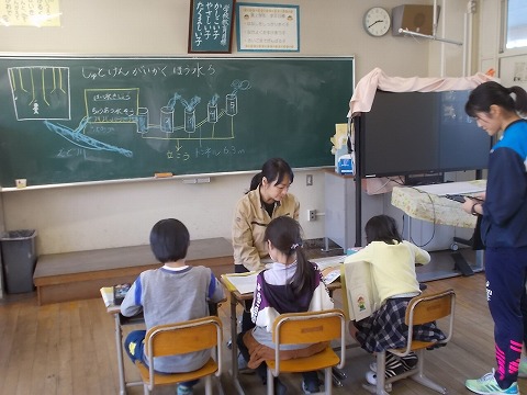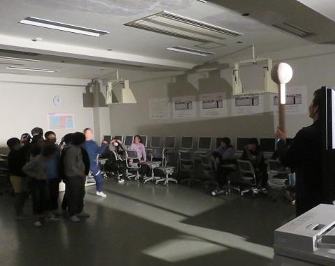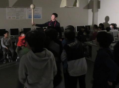 6年生がコンピュータ室で理科の授業をしていました。月の満ち欠けは、太陽と月と地球の位置関係で変わってくることを、先生が模型を使って分かりやすく説明していました。