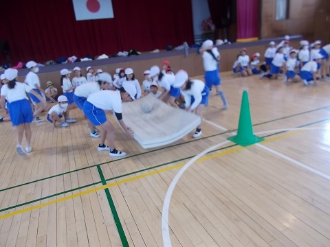 ひんやりとした体育館で、4年生が楽しく学年レクを行っていました。レクはマットでボールを運ぶクラス対抗リレーです。単純だけど楽しい。チームワークも求められます。これは大人でも楽しめます。