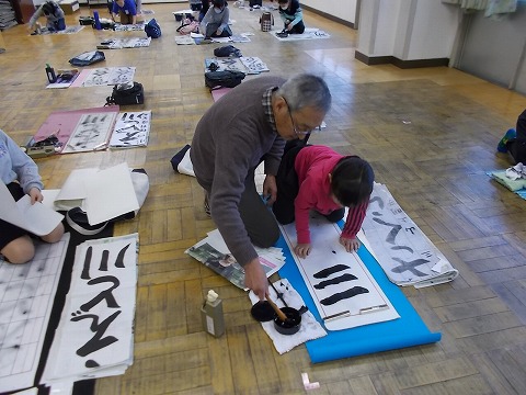 今日は、書きぞめの講師の方をお招きして、代表の子どもたちを一人一人じっくりと指導していただきました。親切でとても熱心な指導をしてくださいました。ありがとうございました。