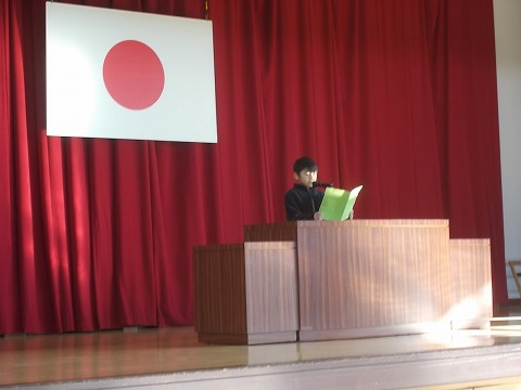 また、児童代表の言葉では、3年生の代表が、とても立派に発表してくれました。運動会でみんなと協力できたこと、持久走大会で緊張したけど自分のベストが出せたこと、初めての書きぞめ「さくら」では、競書会で一番いい字が書けたことなど、とても充実した2学期を過ごせたようです。